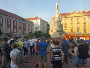 Uz kraće stajanje u gradu Deve uslijedio je dolazak u grad Sibiu, gdje je izletnike dočekala vesela turistička vodičkinja i provela sve kroz grad uz životopisne priče iz povijesti. Kako je vođenje bilo na engleskom jeziku angažirana je Jasmina Hranjec koja je svima bila na usluzi i to svih četiri dana! Svaka joj čast na kvaliteti obavljenog posla i volji za pomoći! Grad Sibiu ima bogatu prošlost i danas se razvija u moderan i lijep grad! Obiđeni su Piata Mare, Piata Mica – kompleks očuvanih srednjovjekovnih trgova sa gradskom vijećnicom, srednjovjekovne gradske zidine sa obrambenim tornjevima, Biserica Evangelica – protestantska katedrala s najvećim orguljama u Rumunjskoj, čuveni Podul Mincinosilor – most laži. Uslijedio je nastavak do Brasova u kojem je bio organiziran smještaj! Kako bi se proslavio sretan dolazak na cilj organizirano je društveno veće uz pjesmu i hrvatsku kapljicu vinarije Tomšić i Novinščak!